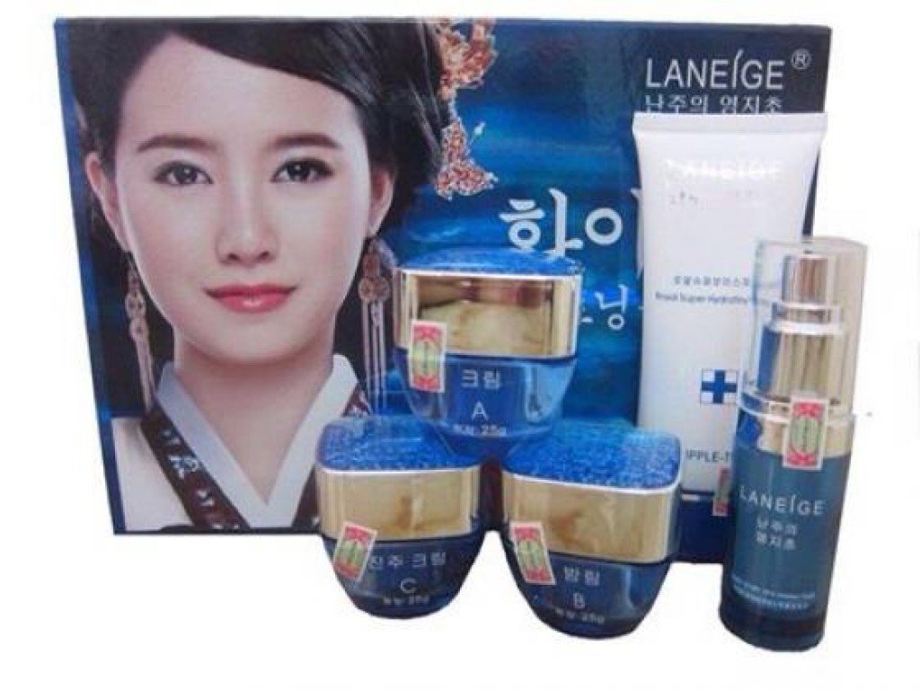 Laneige trị nám cao cấp Hàn Quốc bao gồm 3 lọ kem, 1 sữa rửa mặt và 1 tinh chất trắng da:
